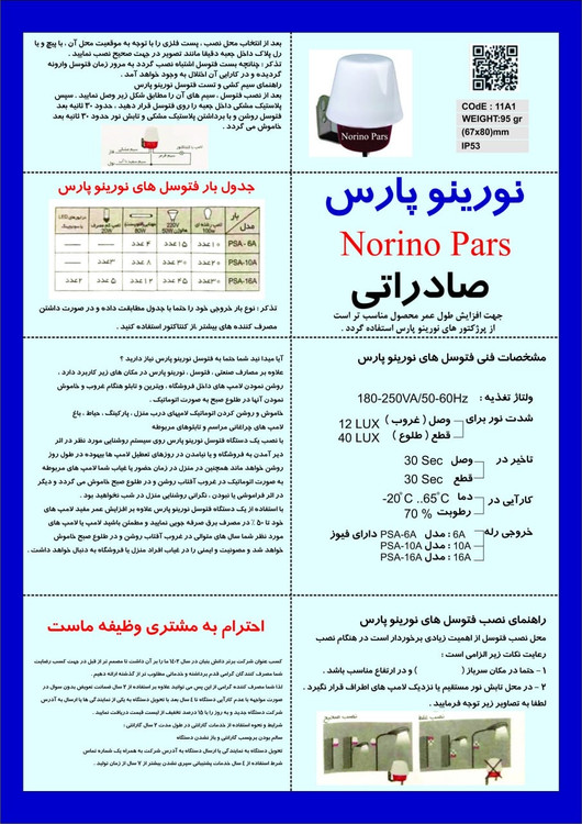 فتوسل وسیله ای الکترونیکی میباشد که سر راه لامپ یا مصرف کننده قرار میگیرد که در هنگام روز به صورت اتوماتیک لامپ ها را خاموش و در هنگام شب به صورت خودکار لامپ یا مصرف کننده ما را روشن میکند کیفیت و و طول عمر فتوسل به چند عامل بستگی دارد یکی رله استفاده شده و مقاومت حساس به نور ldr خازن ها و المان های الکترونیکی که در برند نورینو پارس با کیفیت ترین قطعات مورد استفاده قرار گرفته است .
